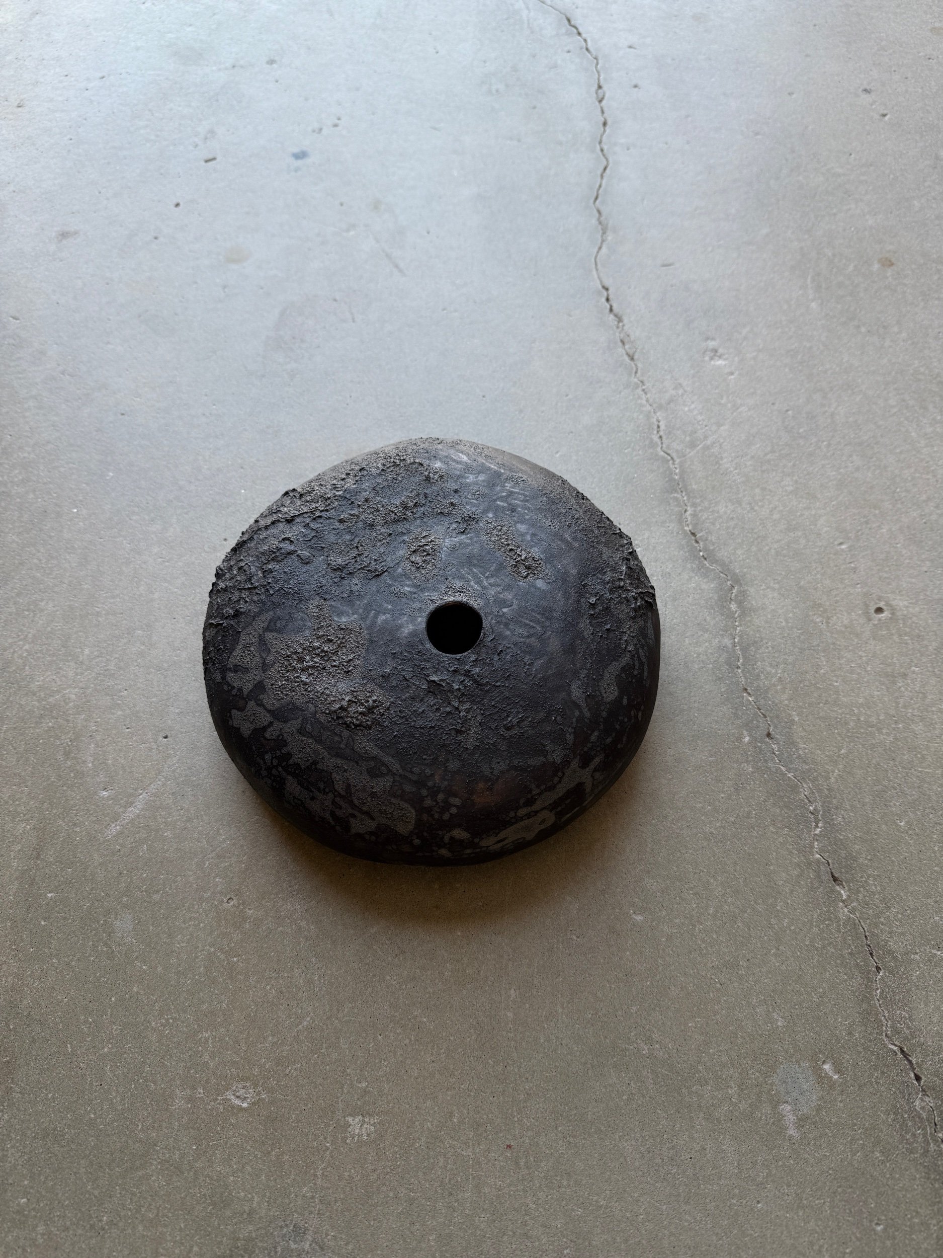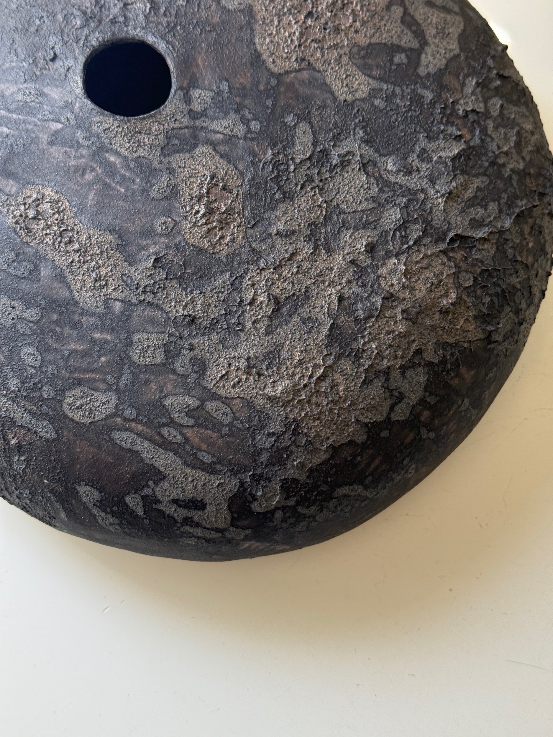 Minimal ceramic vase in textured black glaze. Hand built vase using traditional coiling method. The surface is very tactile and textured.